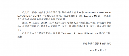 202406-03jinnian金年会信息技术有限公司(以下简称“我司”)经株式会社传奇IP 、RENAISSANCE INVESTMENT MANAGEMENT LIMITED (复兴投资...